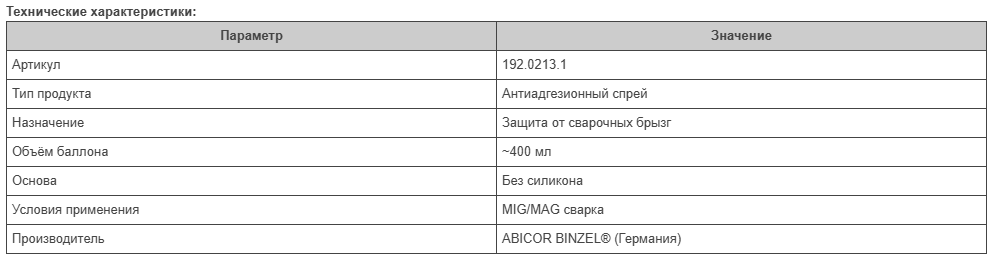 ✅ Предотвращает налипание сварочных брызг на газораспылитель, наконечник и сварочную оснастку